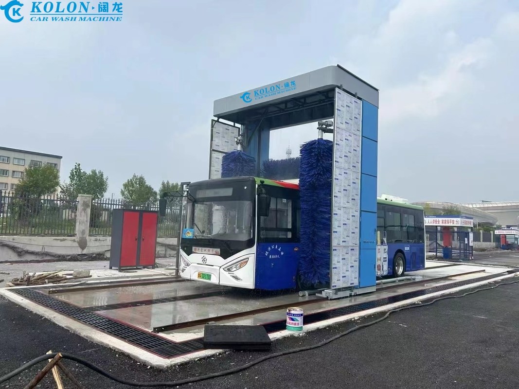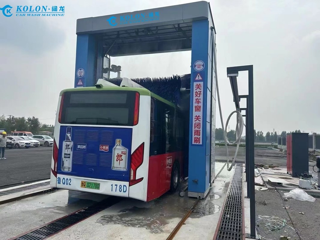 นี่คือเครื่องทําความสะอาดรถบัสอัตโนมัติออกแบบมาเพื่อระบบทําความสะอาดรถเมล์เทศบาล. ใช้พลังงานไฟฟ้า และใช้น้ํา 267 ลิตรต่อรถยนต์ เวลาซักรถยนต์ละ 3-5 นาที และสามารถซักรถยนต์ 5-7 คันต่อชั่วโมง เวลาแห้ง 1-2 นาที